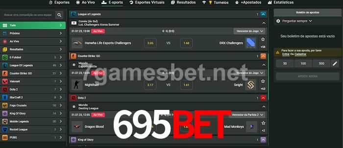 O 695Bet oferece uma grande seleção de opções de apostas em e-sports com probabilidades competitivas